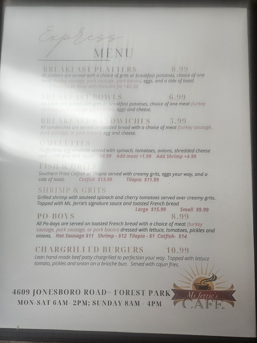 Welcome to Ms. Jerrie's Cafe, a charming breakfast spot located at 4609 Jonesboro Rd, Forest Park, GA. This cozy cafe is a culinary gem where warm hospitality meets homestyle cooking. The menu features a delightful range of breakfast options sure to satisfy any appetite.